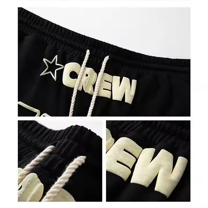 Custom Vintage 100% Cotton Short Pants French Terry Shorts High Quality Men Sweat 3D Screen Foam Puff Print Shorts for Men