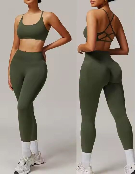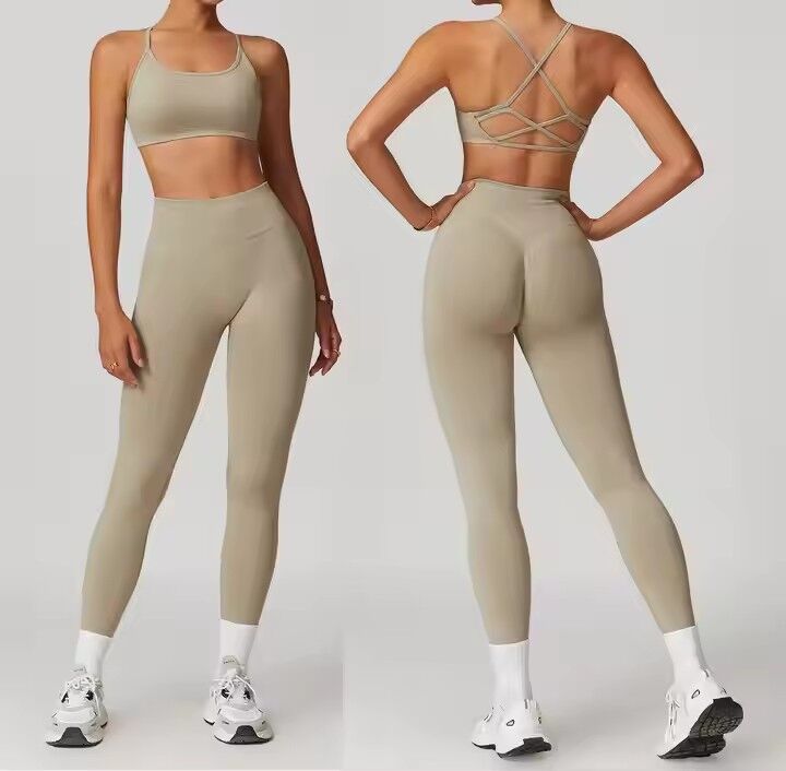Seamless Cross Back Bra Scrunch Butt Lift Pant 2 Piece Sports Set Chest Pad Removed tank Top No Front Seam Legging Gym Yoga Set