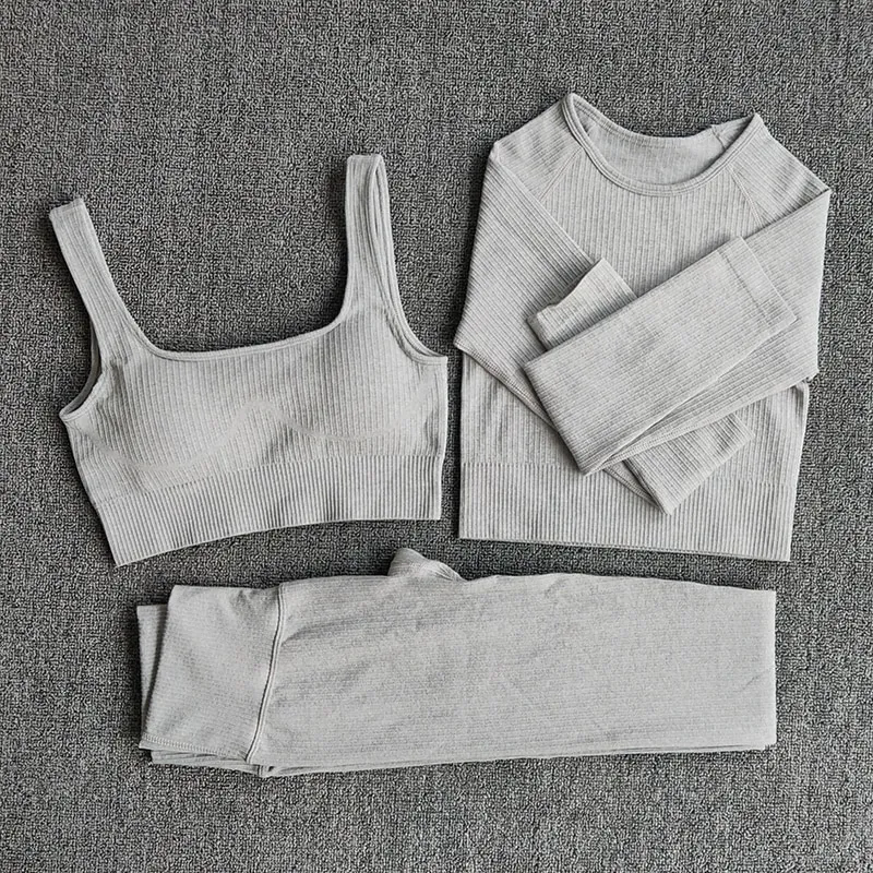 Custom Logo 3 Pieces Women Sportswear Seam Sports Bra High Waist Leggings Suit Active Wear Athletic Gym Fitness Yoga Sets