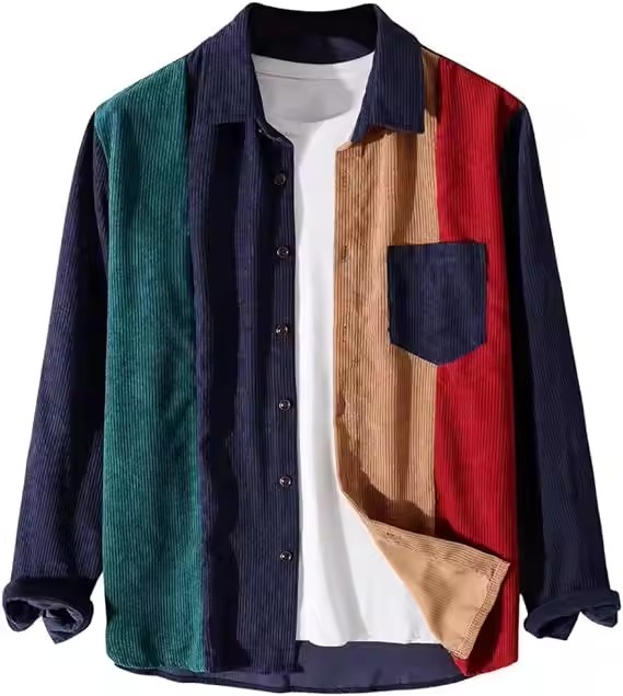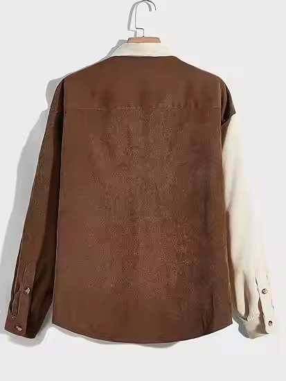 Factory Customize Low Moq Colored Beige Brown Camel Joint Corduroy Shirts for Men