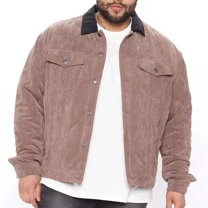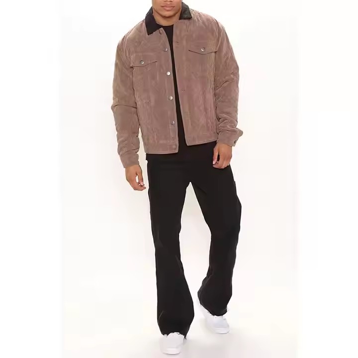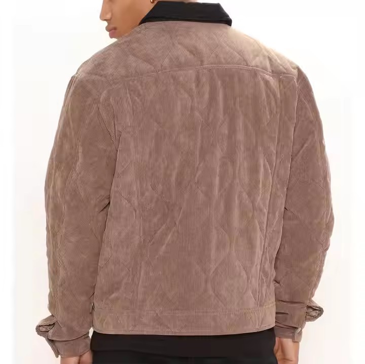 Good Quality Winter Private Label OEM Custom Bomber Jacket With Fold Down Contrast Collar Mens Casual Corduroy Jacket