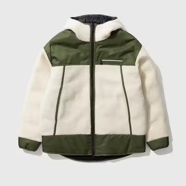Custom Mens Faux Fur Fill Down Reversible Sherpa Fleece Jacket