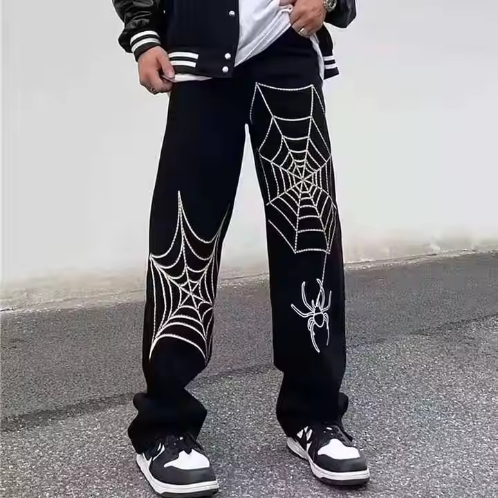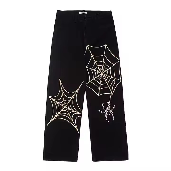 Custom Men’s Pants Black Fashion Street Style Summer Pants Men 3d Chenille Embroidery Fashion Pants for Men