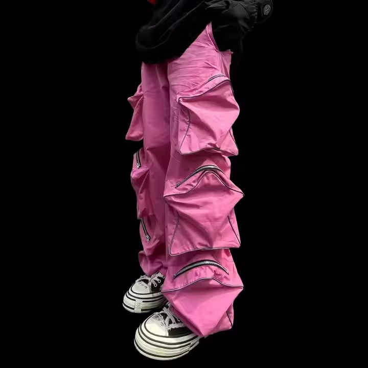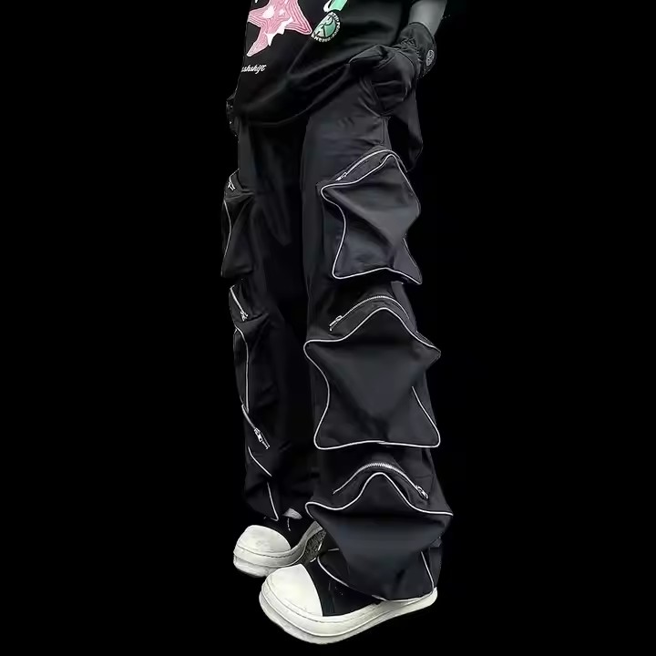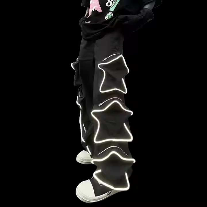Customize Reflective Pants Personalized Streetwear Track Pants Customized Multiple Pockets Black Cargo Pants