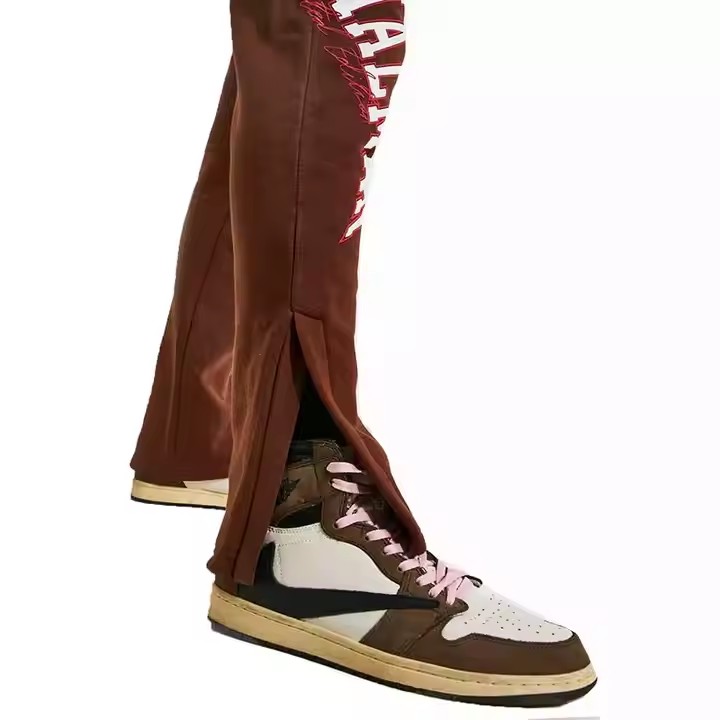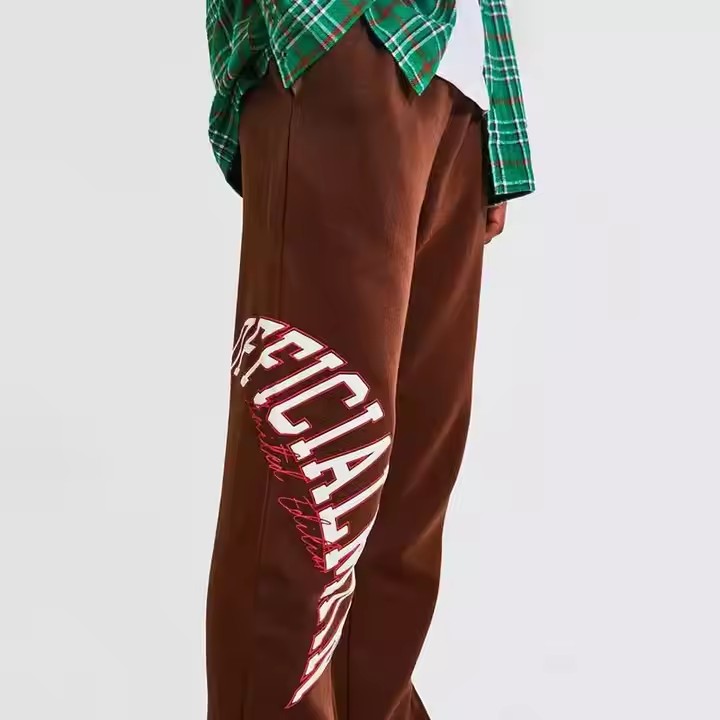 Hip Hop Men Trousers Loose Elastic Waist Embroidery Logo Sweatpants Split Hem Velvet Track Pants for Men