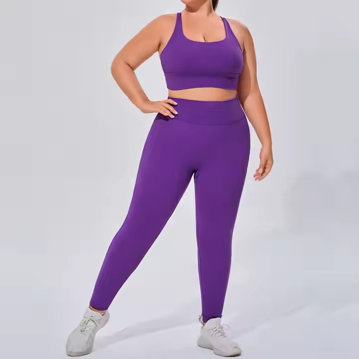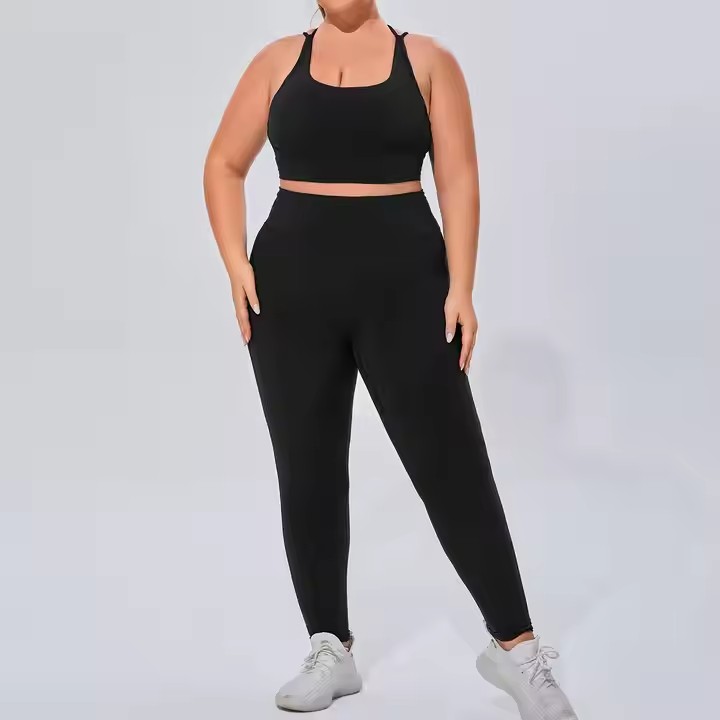 Hot Sale S-3XL Plus Size 68% Nylon 32% Spandex Backless Cross Thin Strap Bra and No Front Seam Workout Leggings 2 PCS Yoga Sets