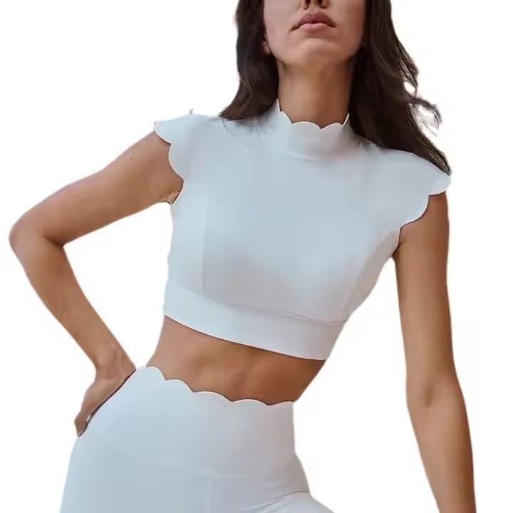 New Custom Scallop Shaped Gym Active Wear Beauty Back Wavy Design Breathable Sports Fitness Yoga Bra for Women