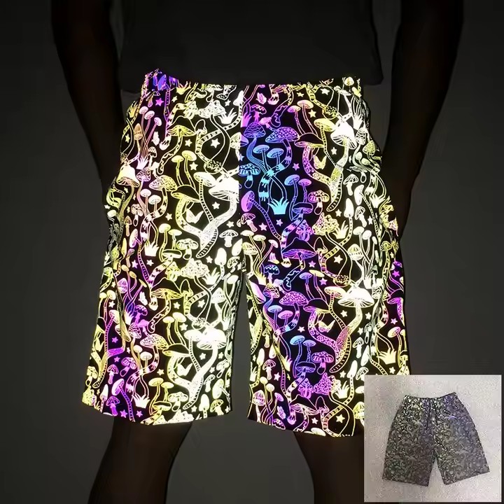 New Design Light Night Reflective Outdoor Hip Hop rainbow Laser Streetwear Sports Shorts Shiny Blink Hiking Short Trunks for Men