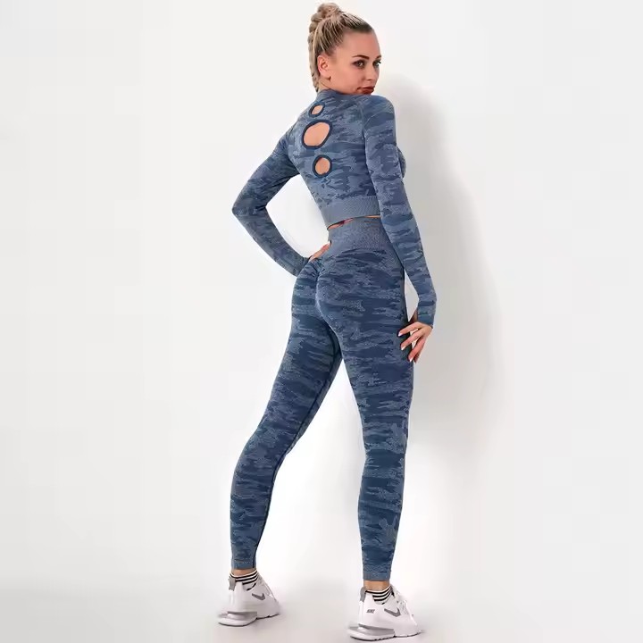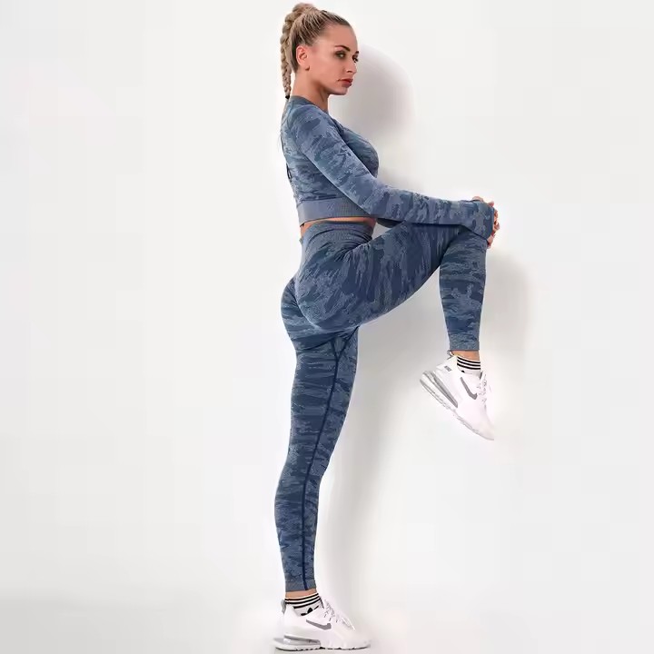 New Butt Lift Camouflage High Waist Seamless Yoga Pants Leggings Long Sleeve Crop Top Thumb Hole Stretch Sports Yoga Wear