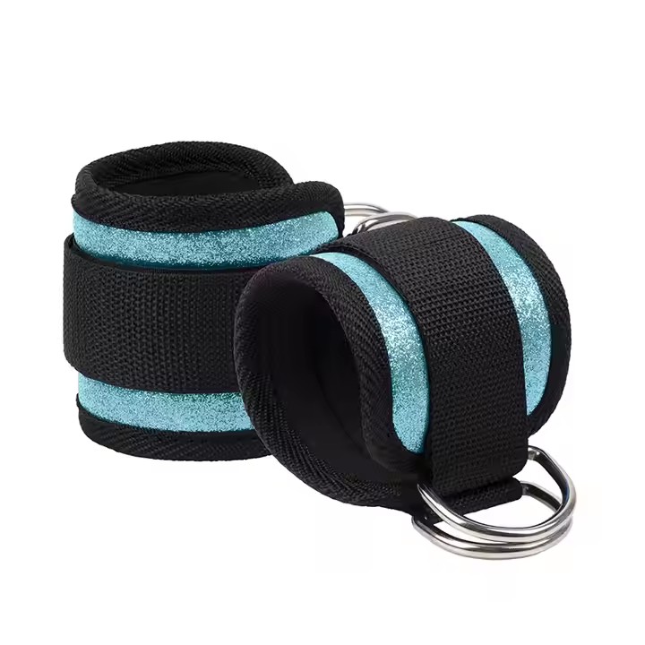 High Quality High Level Custom Blue Sequin Fitness Weightlifting Ankle Wrist Straps Squat Pad Wrist Wrap