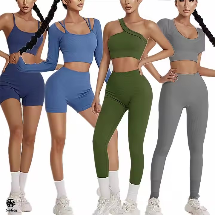 Wholesale 6pcs Women’s Sport Suit Gym Fitness Yoga Sets Breathable Lightweight Seamless Activewear Wholesale Fitness Clothing