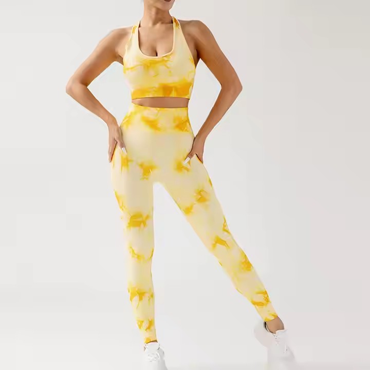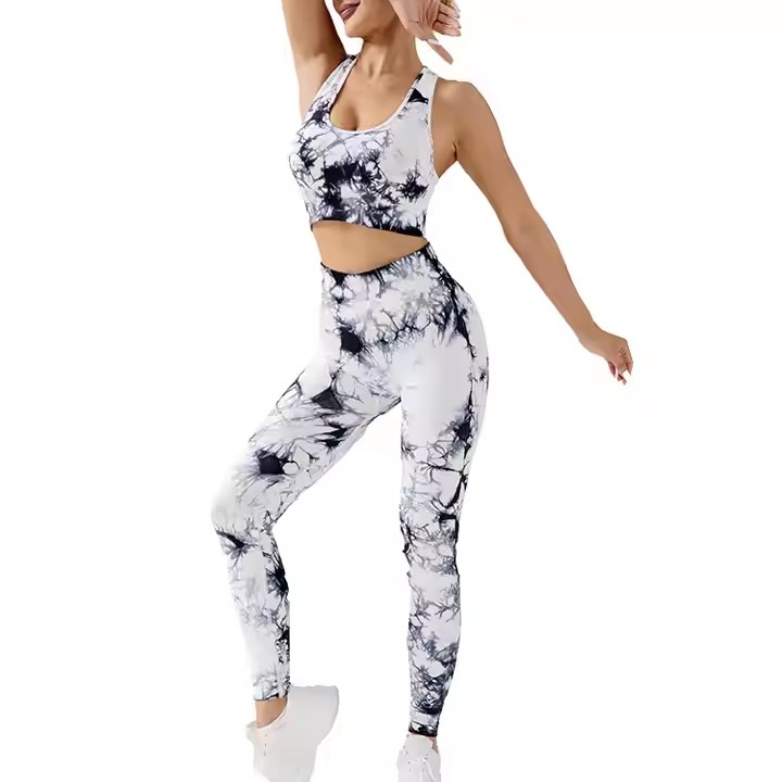 Woman Fashion Seamless Yoga Sets Tie-Dye Gym Fitness Sets Outdoor Running Clothes Sports Bra With Chest Pads High Waist Leggings