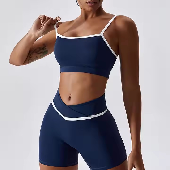 2 Piece Tracksuit Set Gym Running Yoga Sportswear Sports Bra Crop Tank High Waist Shorts Workout Outfits for Women