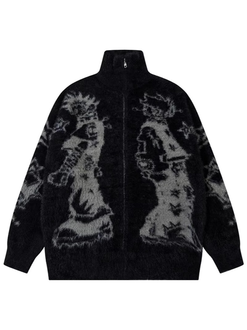 JH 17777 Stand collar sweater men's and women's loose lazy cardigan knit coat