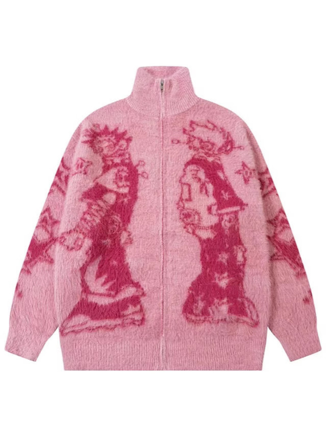 / JH 17777 Stand collar sweater men’s and women’s loose lazy cardigan knit coat