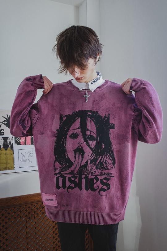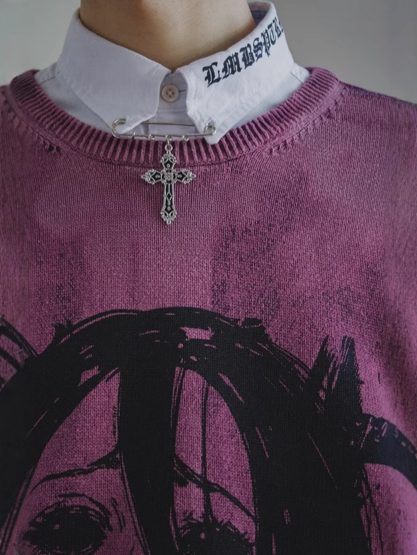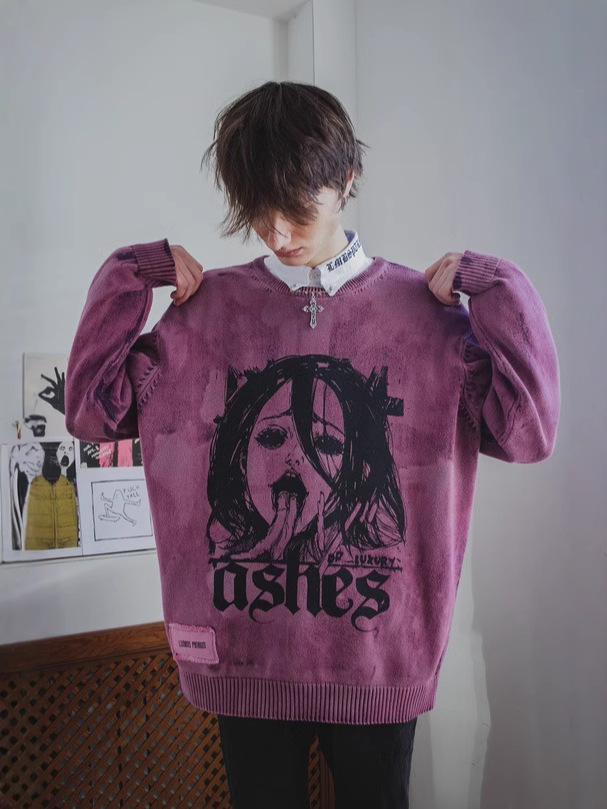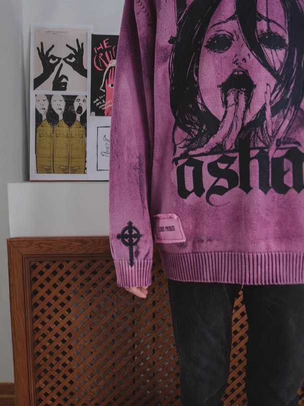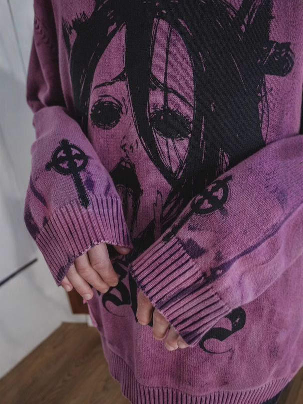 Autumn and winter new cartoon cartoon printing American street dark retro men and women with the same loose pullover sweater