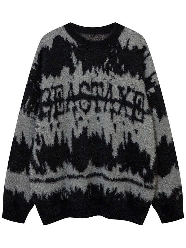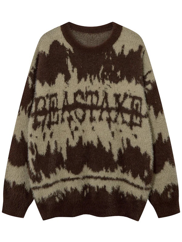 American design sense of minority letters against color lazy style American street sweater men’s and women’s loose knitwear