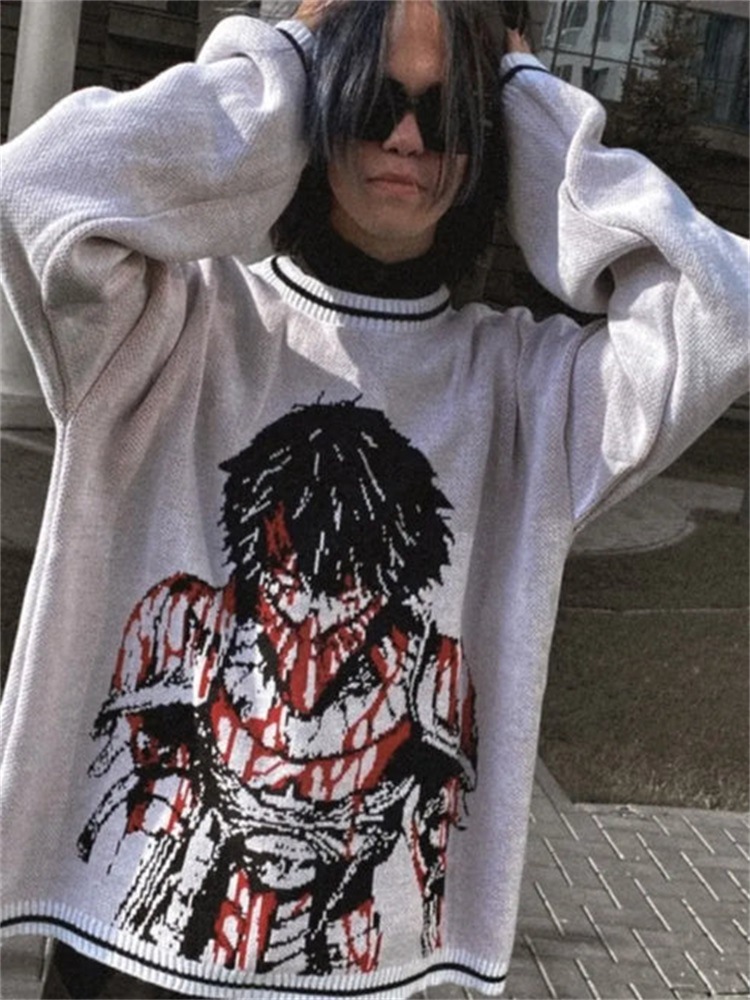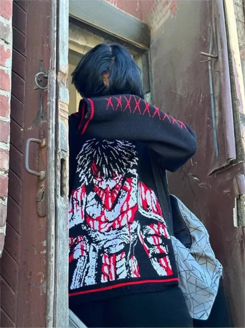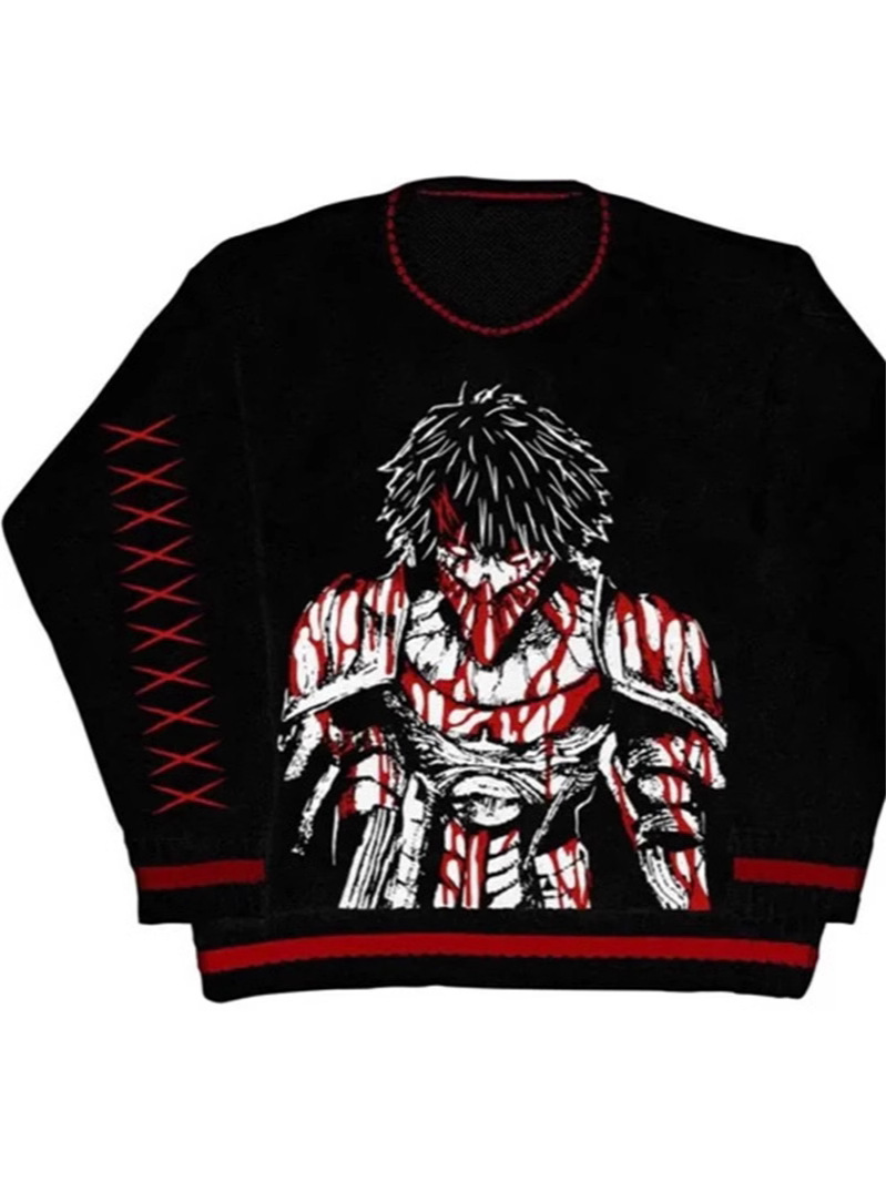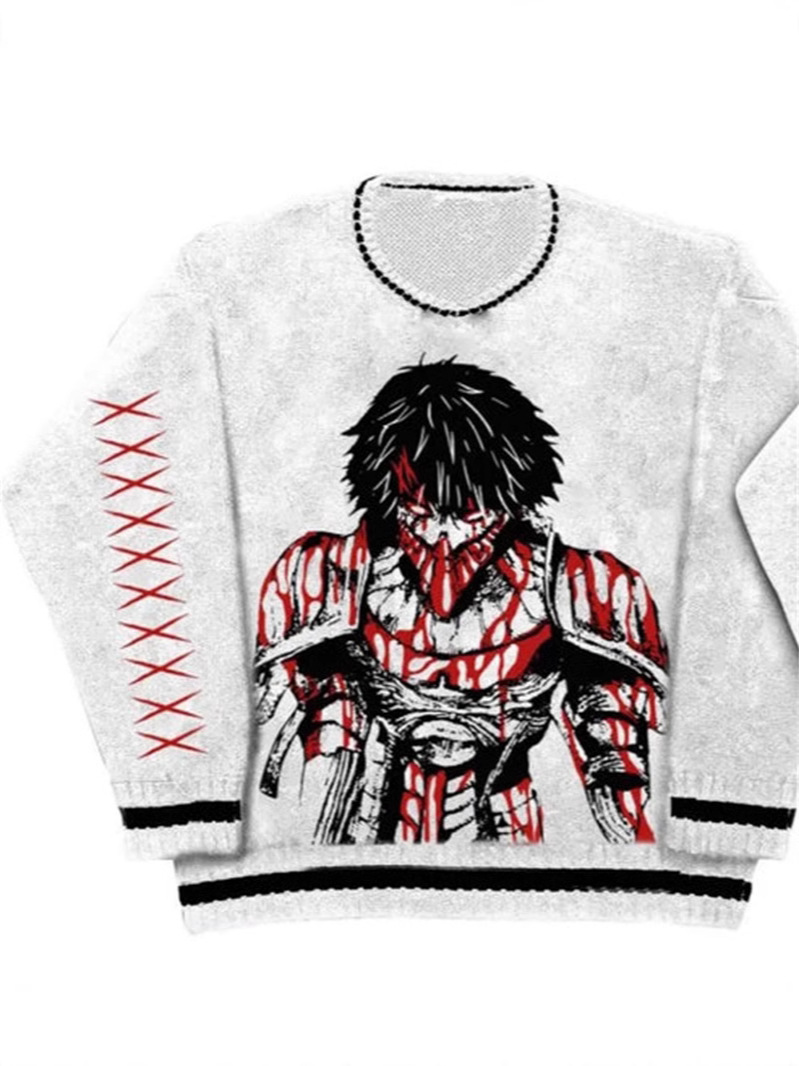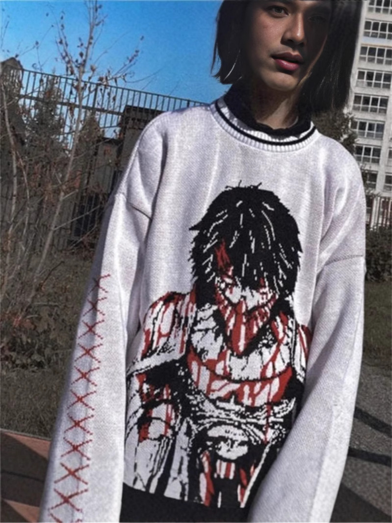 Harajuku hip hop Goth anime jacquard knit men’s sweater Autumn/winter retro casual pullover women’s sweater