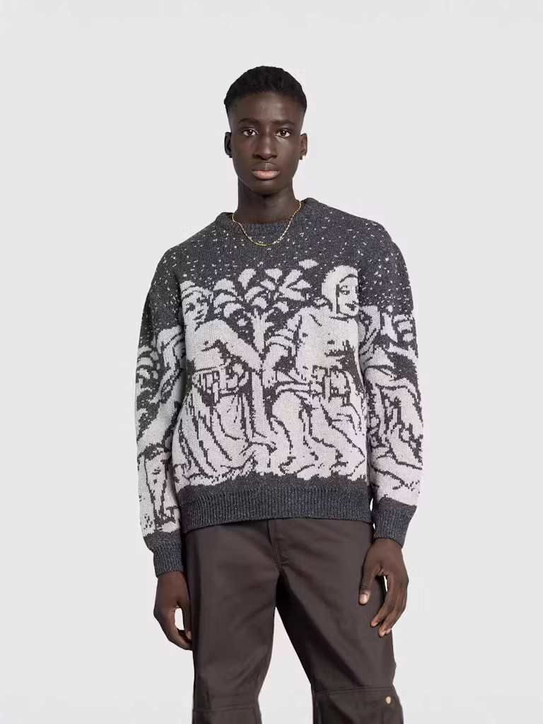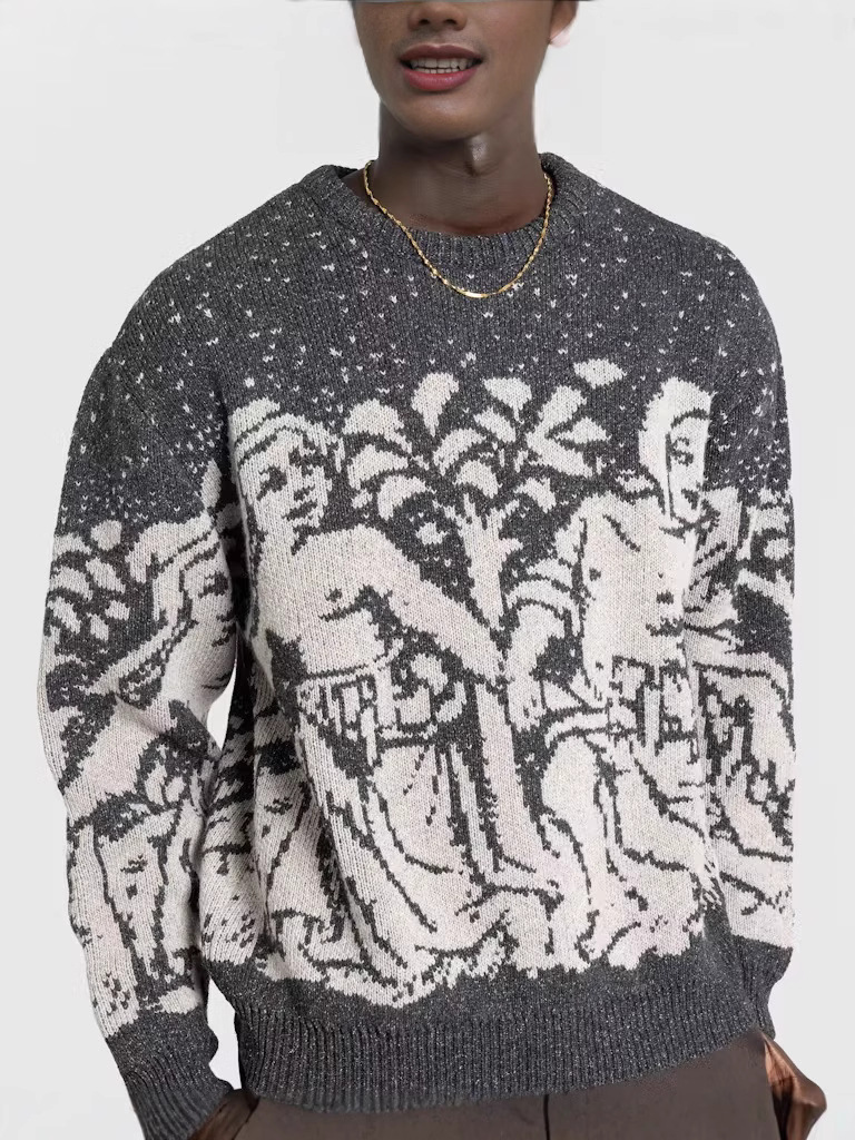 American street autumn and winter new retro cartoon print personality design casual men’s and women’s sweater knitwear