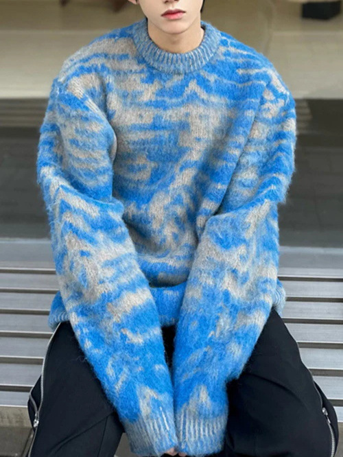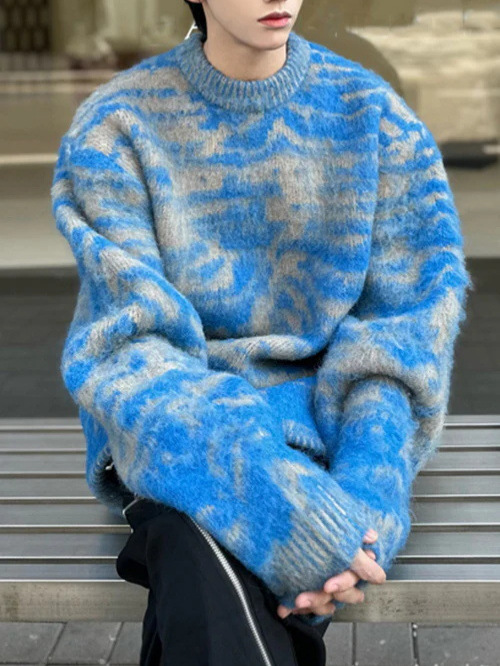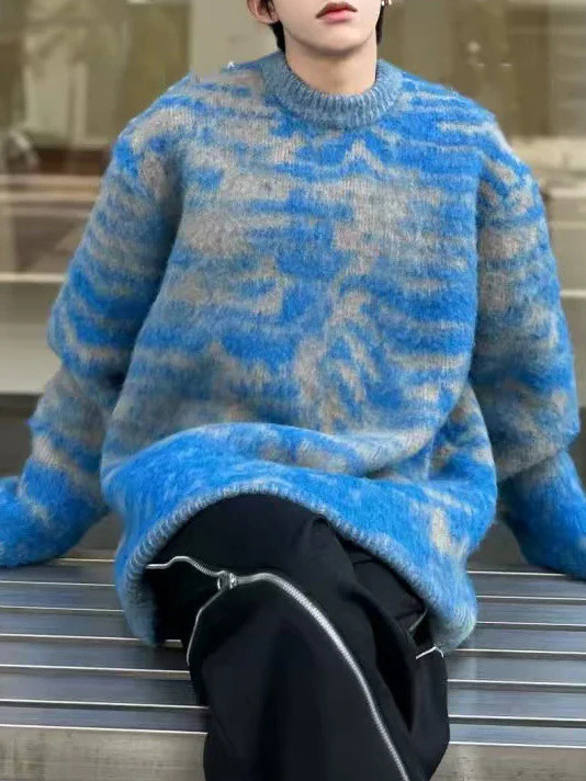 Cross-border American slouchy screenshot Casual blue striped crewneck sweater men’s and women’s fall/winter loose couple knitwear