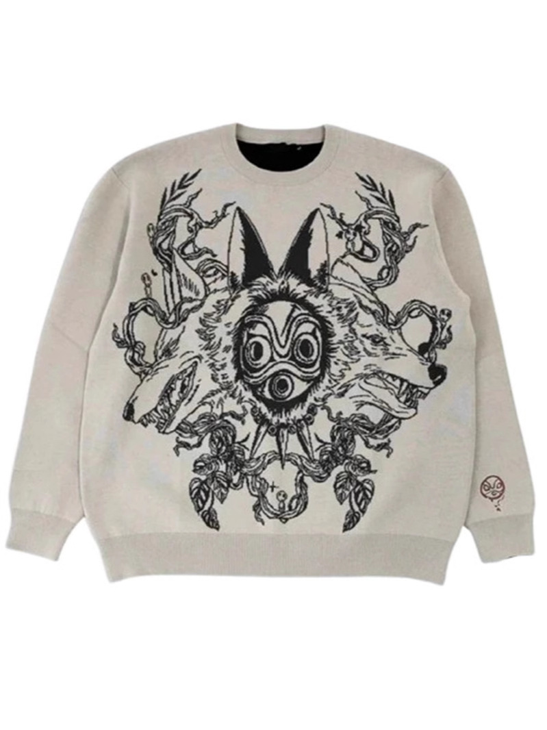 Retro Day anime jacquard personality casual knit sweater Cross-border new autumn and winter men’s and women’s lazy sweater
