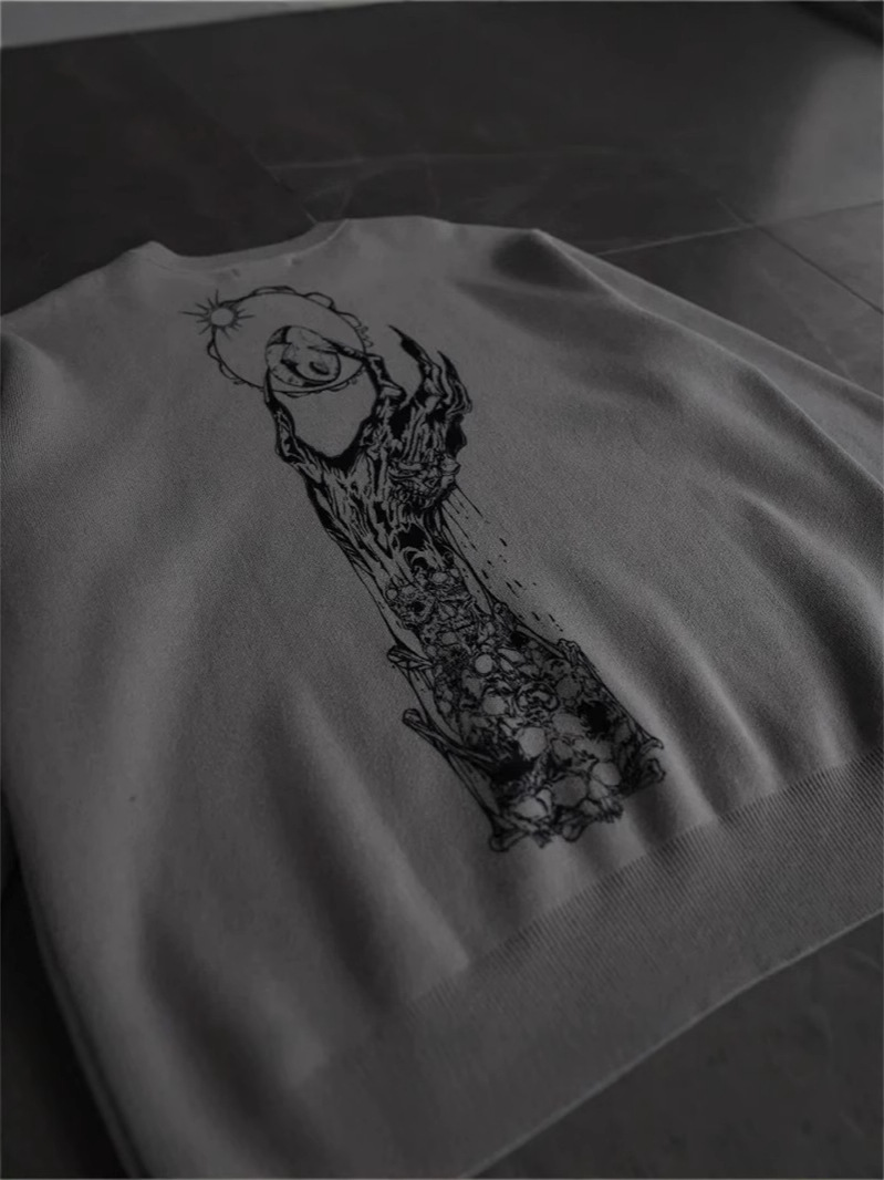 Autumn/Winter American Autumn/Winter dark style cartoon printed round neck pullover long sleeve knit sweater