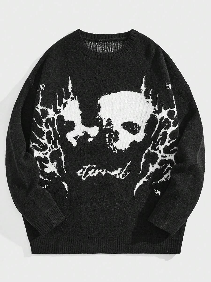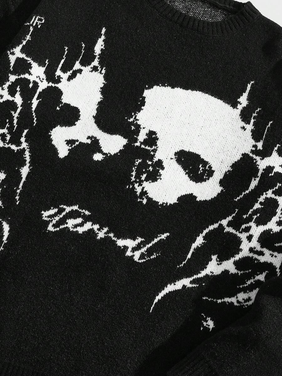 American dark system skeleton jacquard round neck loose long sleeves Europe and the United States new knit sweater in autumn and winter