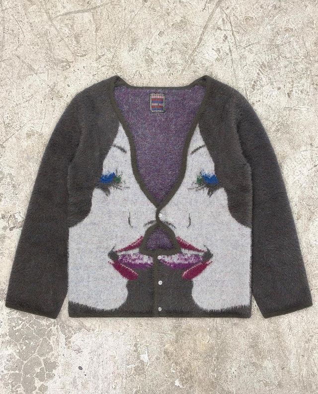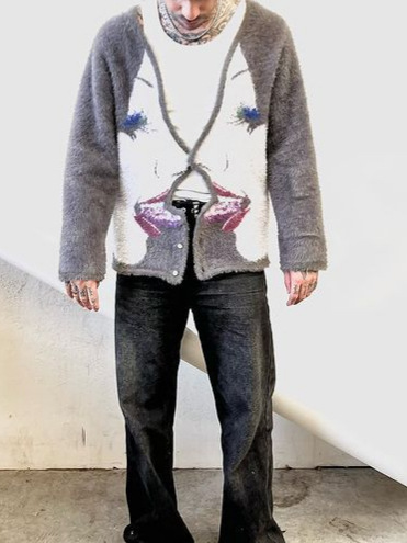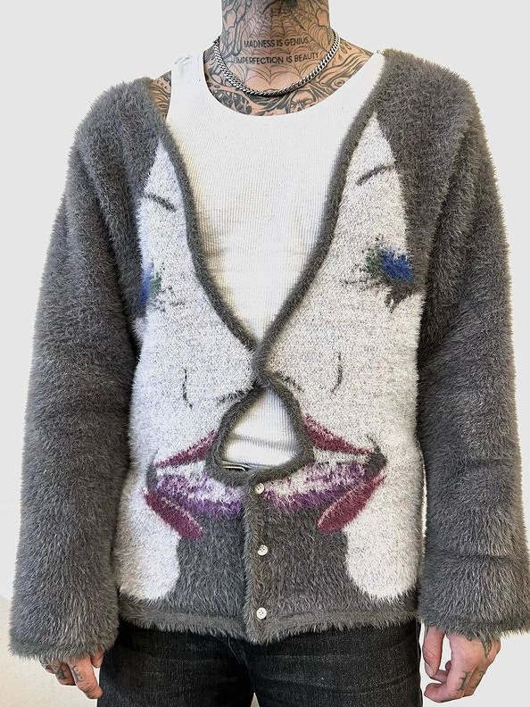 Europe and the United States autumn and winter new dark grab wool cartoon printed cardigan men and women knitted sweater coat