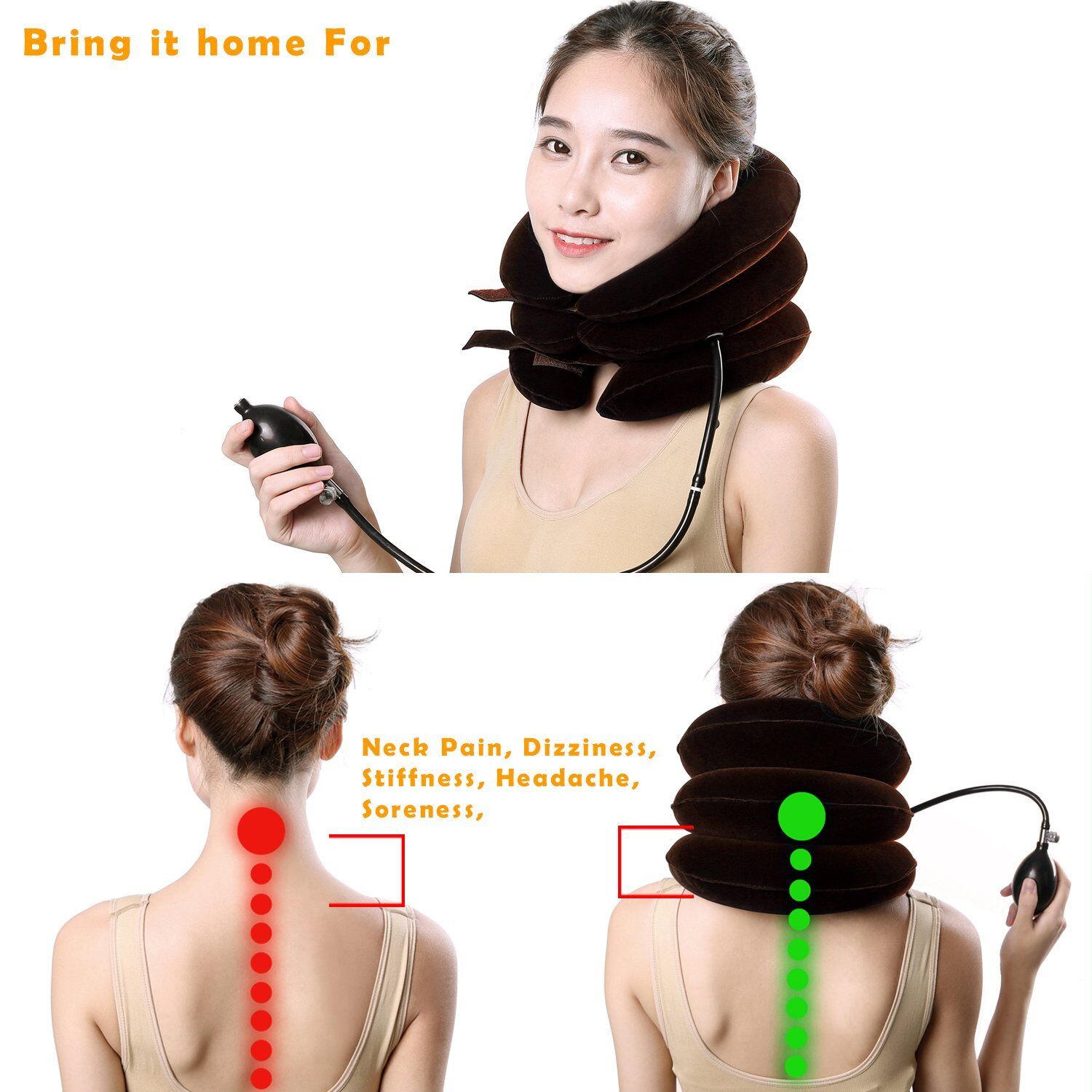 · DESIGNED FOR MAXIMUM COMFORT: Your Inflatable Neck Traction Collar is easily adjustable which enables you to precisely control the level of traction needed to relieve your neck and shoulders. It fits a 14 -19 Inch Neck Size, Fits Both Men and Women.